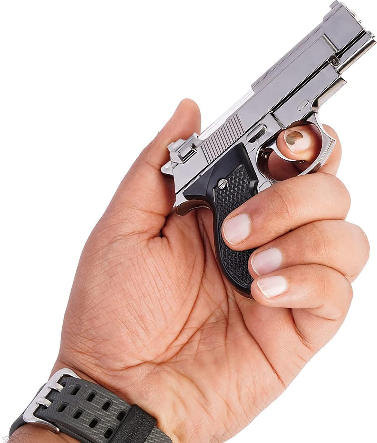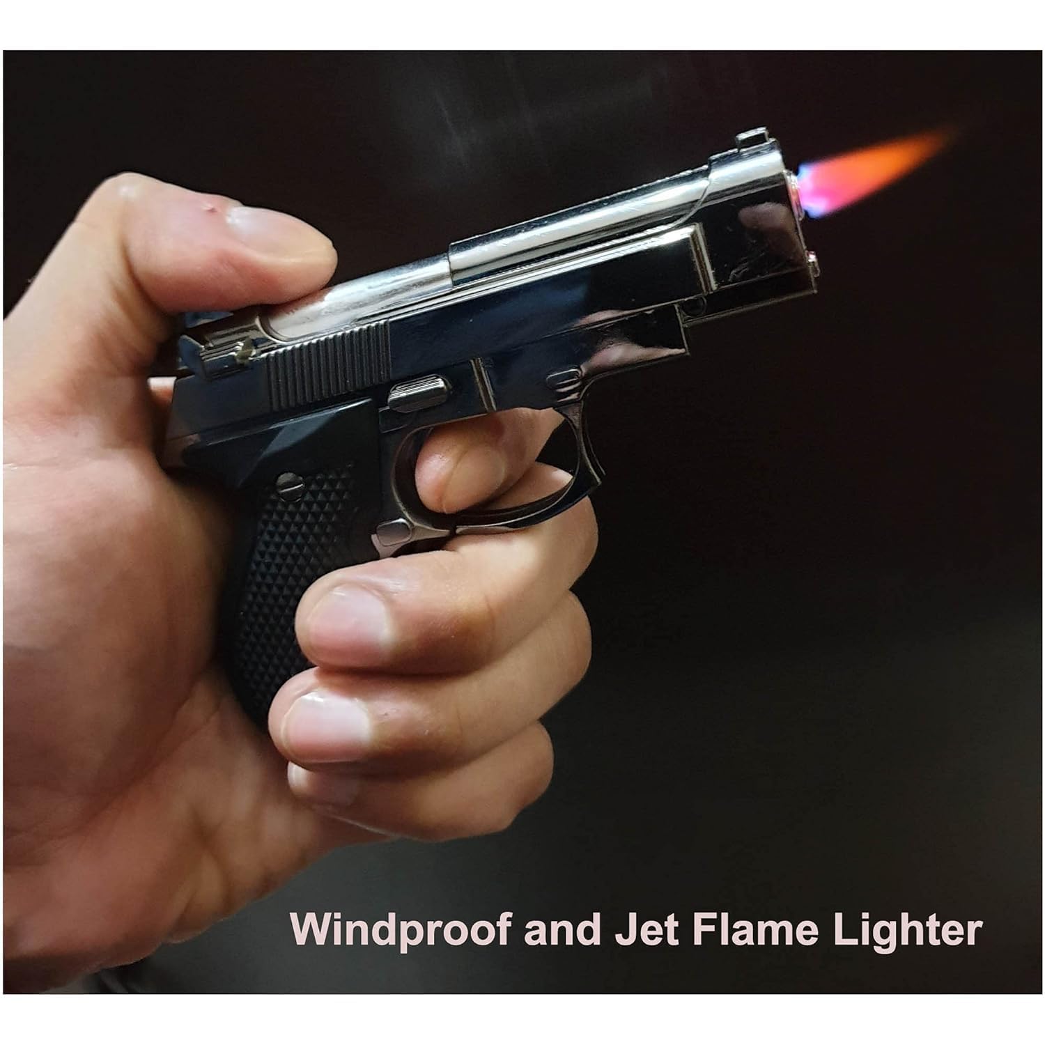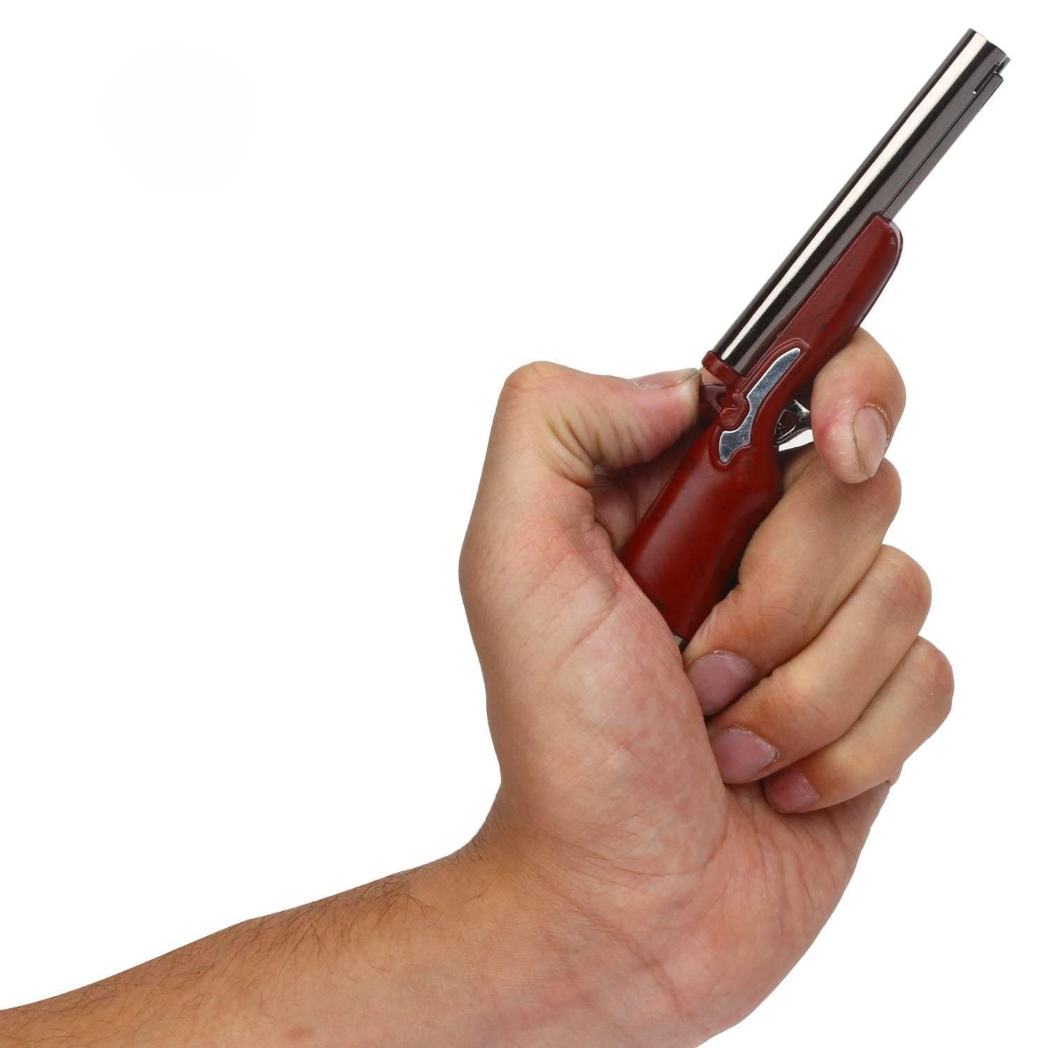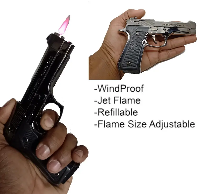 Realistic pistol-style and novelty gun flame lighters designed for bold