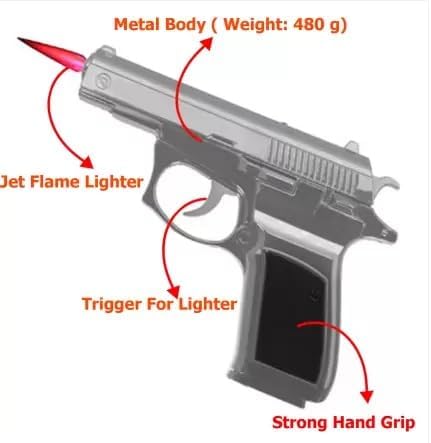 Realistic pistol-style and novelty gun flame lighters designed for bold